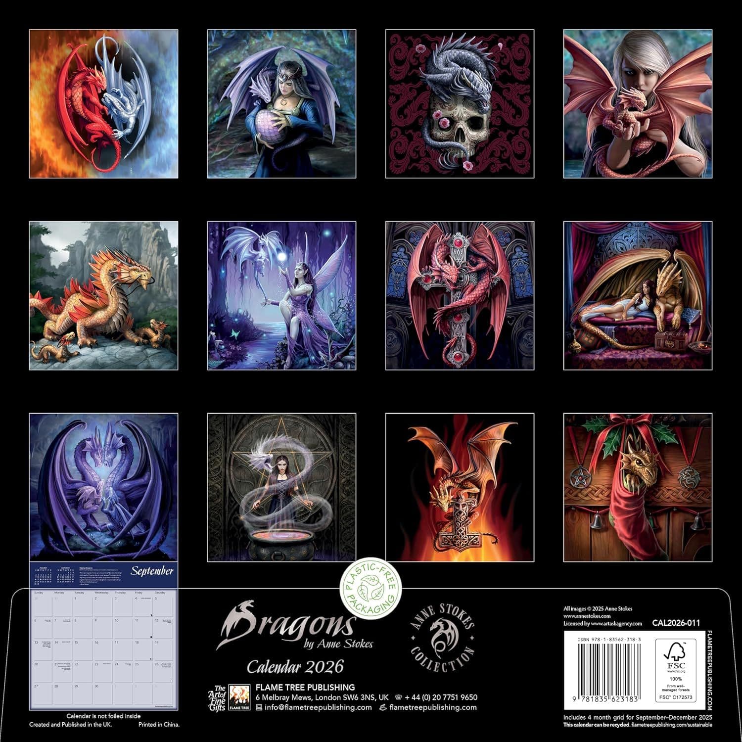 This eye-catching calendar gathers 12 of her celebrated dragons in vivid artwork that really brings these majestic creatures to life. Informative text accompanies each work in this art calendar and the datepad features previous and next month’s views. Printed on FSC-certified paper, with plastic-free packaging.